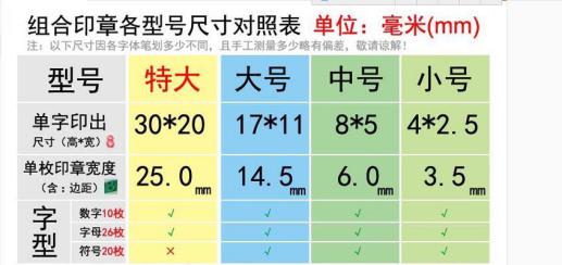 有一部分客戶需要的不僅僅是logo,而是需要順序印刷的編碼,例如“shuanglong-001”一直到“shuanglong-1000”這樣的話使用絲網(wǎng)印刷就明顯的不行了,我們不可能去做一千個絲網(wǎng)版。這種情況下我們一般使用活字碼人工進行印刷,費事費力,并且印刷出來不是特別的規(guī)范美觀。如果同行有更好的方法請不靈賜教,我的QQ:764234081。下圖就是我們常用的活字碼的尺寸表。